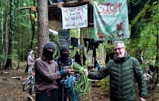 Als Spende für die Baumhaus-Aktivist*innen. Ich bin da gewissermaßen Wiederholungstäter, übrigens immer mit Unterstützung von vielen Aktiven aus meiner Ortsgruppe. Schon für den Hambacher Wald hatte ich bei uns Material gesammelt. Dieses Mal kamen so unter anderem 1.500 Meter gebrauchte Kletterseile zusammen. An der eigentlichen Situation hat sich ja auch nichts verändert: Politik und Wirtschaft marschieren immer weiter Richtung Klimakatastrophe.