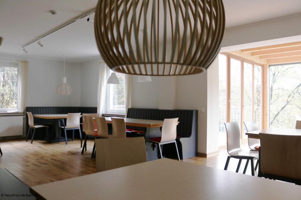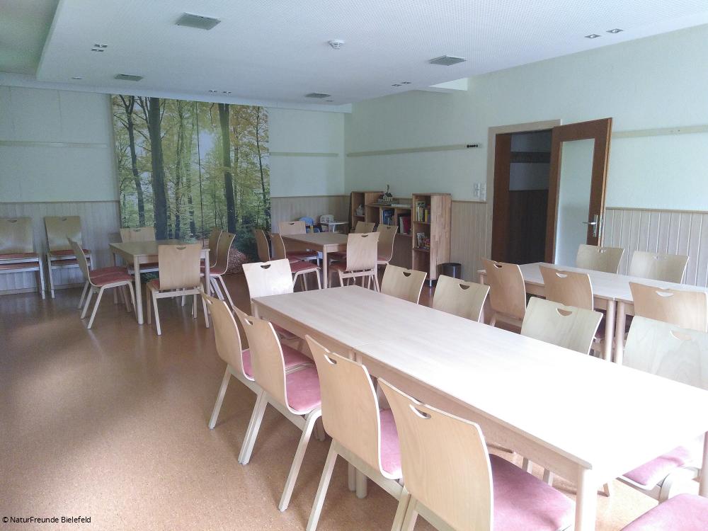 Ab Hbf. Bielefeld mit Stadtbahn 2 nach Sieker, weiter mit Bus Linie 34 nach Oerlinghausen zum Kastanienkrug. Auf dem Welschenweg in ca. 30 min. zum Naturfreundehaus.