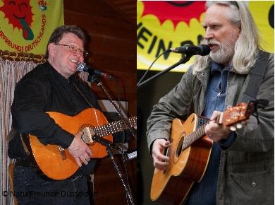 Sie kennen sich bereits seit vielen Jahren – nun stehen sie zum ersten Mal für ein gemeinsames Programm auf der Bühne: Gerd Schinkel (Stimme/Gitarre) und Klaus Grabenhorst (Stimme/Gitarre) präsentieren am Sonntag, 29.03. im Naturfreundehaus Lieder und Gedichte aus politischen Brennpunkten in Deutschland und anderswo.